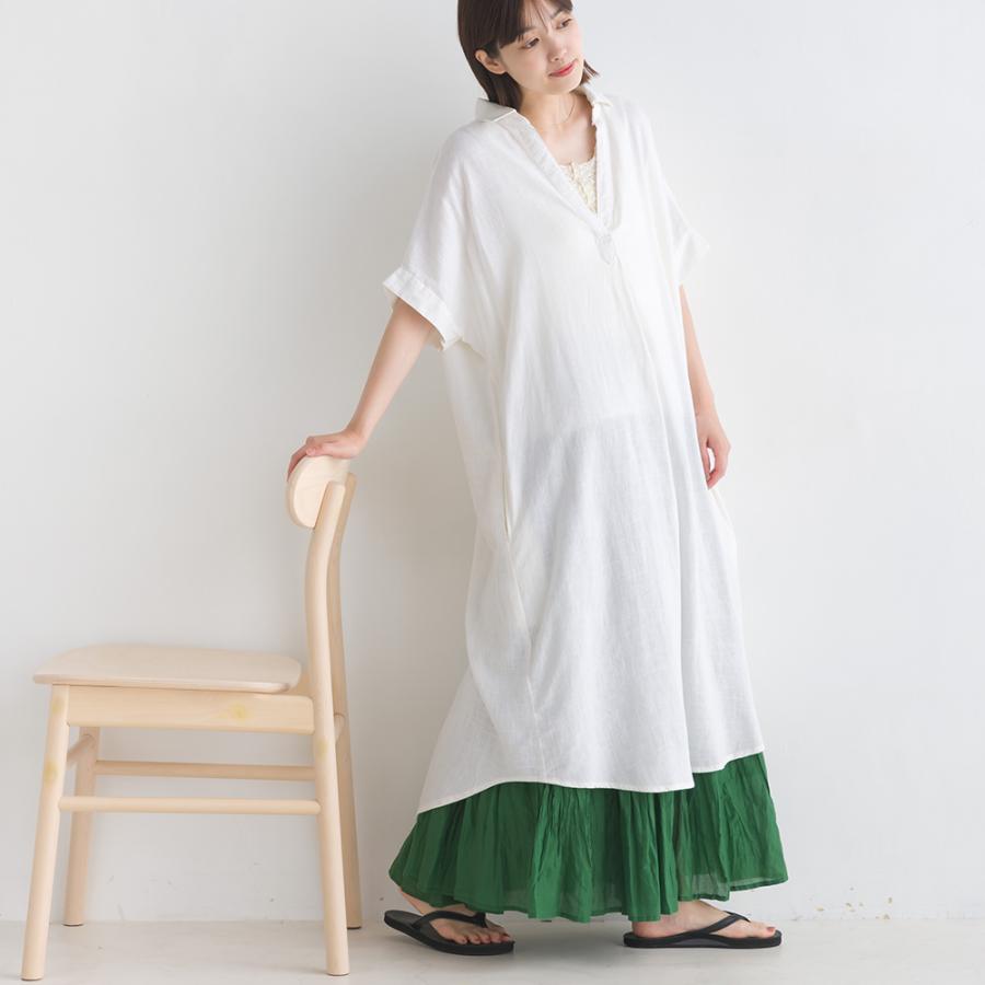正規販売 Yaara ベルギーリネン半袖ワンピース Vanilla バニラ ナチュラルファッションセレクトショップ